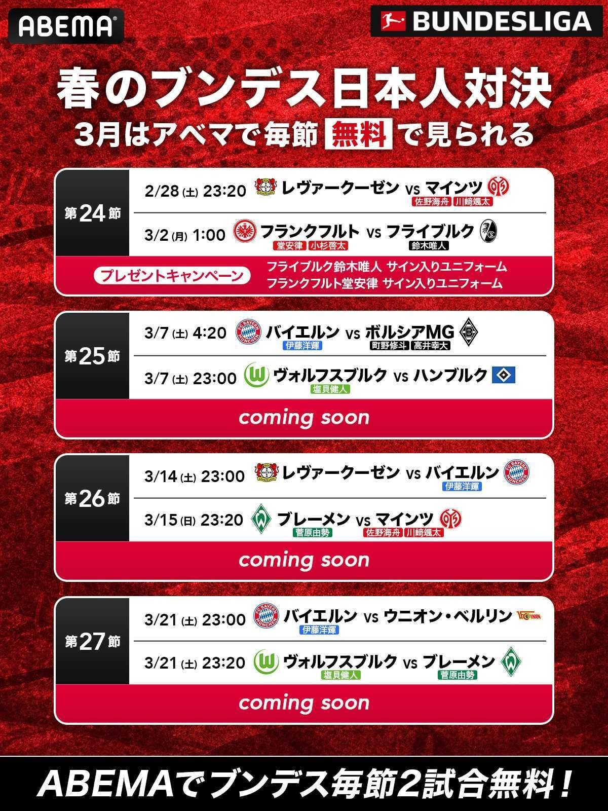 放送URL:https://abema.tv/video/genre/sports/soccer/bundesliga