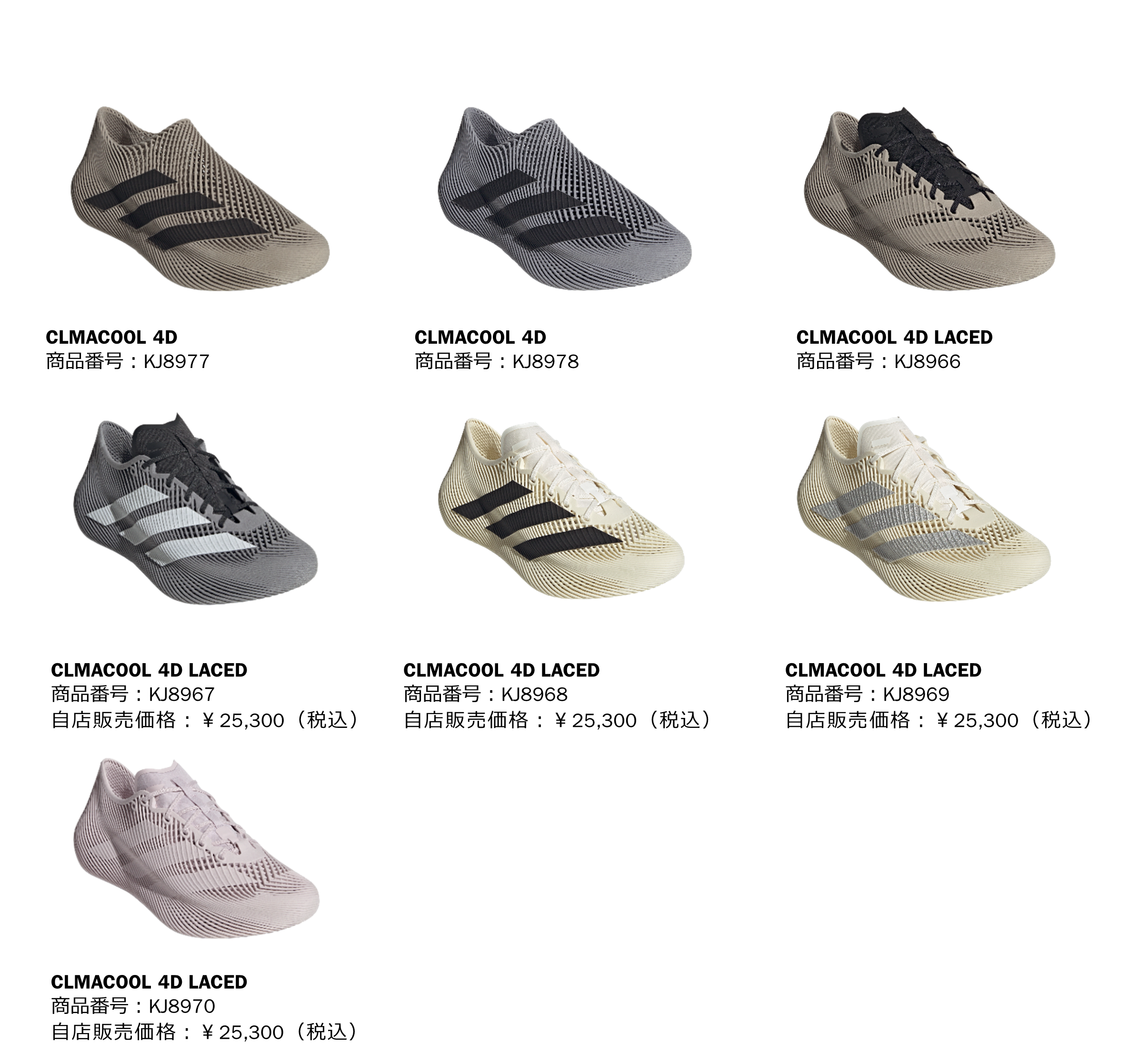 アディダス ジャパン株式会社(本社:東京都港区、代表取締役:萩尾 孝平)は、アディダス独自の3Dプリント製法で作られたシューズ、「CLIMACOOL 4D(クライマクール 4D) / CLIMACOOL 4D LACED(クライマクール4Dレースド)」の新たなカラーバリエーションを2026年3月3日(火)より発売いたします。