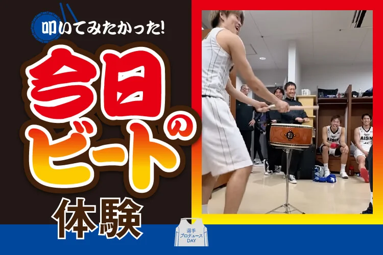 チームが勝利後、ロッカールームで行っている恒例イベント(今日のビート)。ヘッドコーチに指名された(その試合で活躍・貢献した選手やスタッフ)が太鼓を叩き、勝利を祝う熱い瞬間を、来場者の皆さまにも体験していただけます。