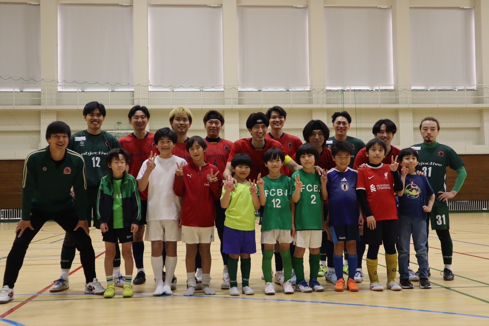 地域小学生のフットボールの普及を目的とし、小学1〜4年生を対象にフットサル体験会を実施しました。サッカー経験は問わず、ボールに触れる・身体を動かす楽しさを感じていただきました。