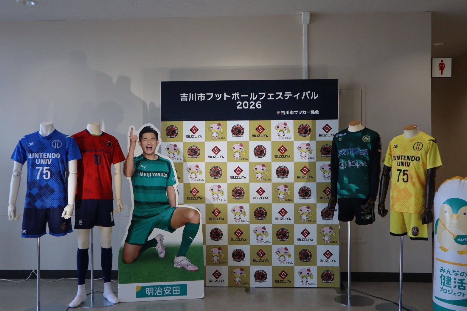 昨年に引き続き、「吉川市フットボールフェスティバル2026」を無事に開催できましたこと、改めて感謝申し上げます。今回は、試合以外の部分でも思い出に残ってもらえるようなコンテンツを設けました。来場特典や参加型企画など、順天堂大学の学生と企画し、学生ならではの視点や企画に私自身も大変学びの多い時間となりました。
