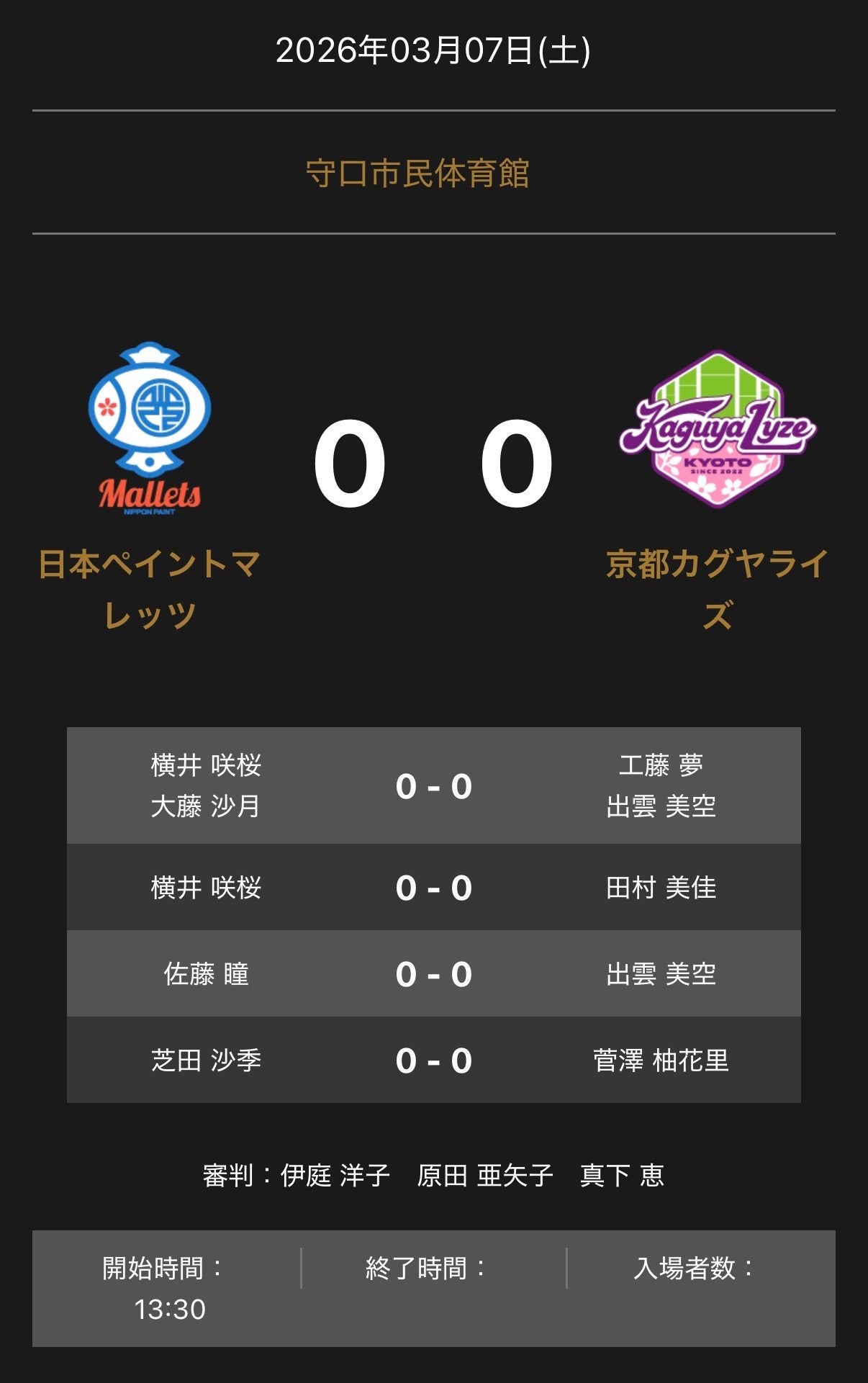 ノジマTリーグ 2025-2026 公式戦 3月7日開催 日本ペイントマレッツ vs 京都カグヤライズ 対戦オーダーを発表いたします。