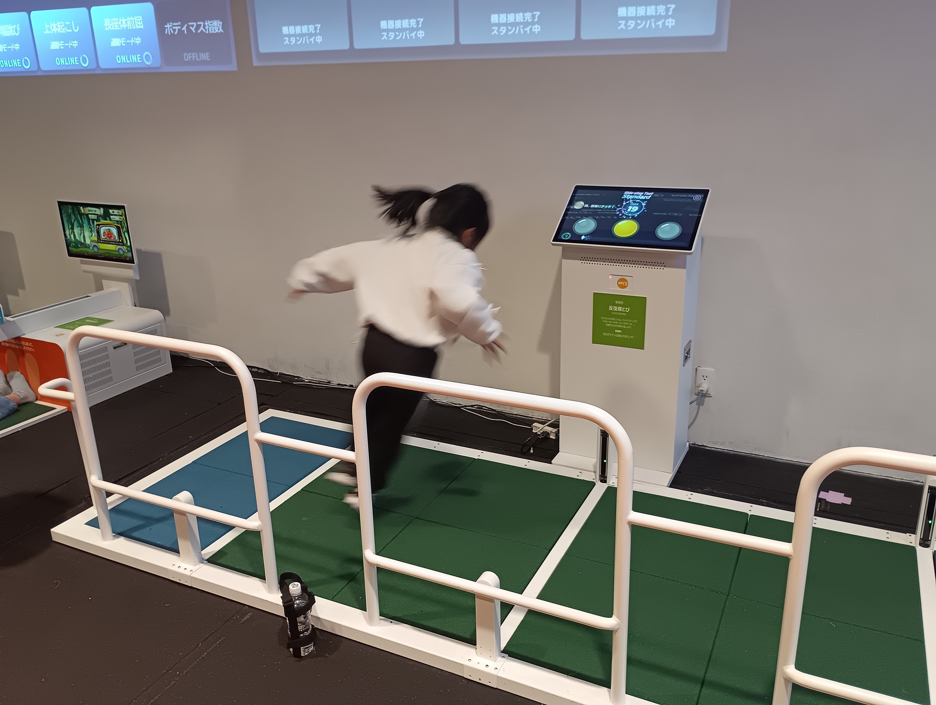・体力測定機器の別規格製品として、床投影型デジタル運動機器「フロアピック」を導入、幼児、ファミリー利用を想定し、モグラたたきや風船割り、算数や間違い探し、脳トレなど、みんなで楽しみながら体を動かせる仕様に、さらに高齢者利用も想定し、現在埼玉県久喜市のアリオ鷲宮にて高齢者フレイル予防の実証実験にてテスト稼働中。