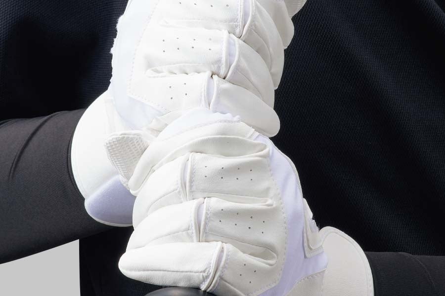 中指〜小指を3Dパターンにより立体縫製することで自然なバットグリップが可能。
