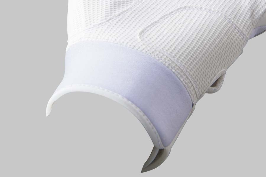 伸縮性の高い素材を使用した手首部のゼロフィットベルトが手首部の可動域を上げ、バットスイングをサポート。
