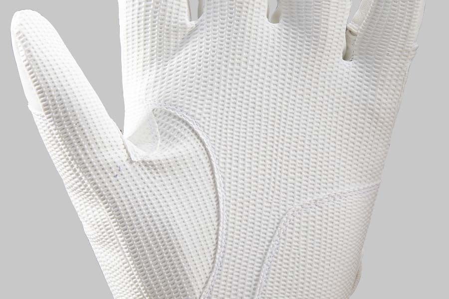 中指〜小指を3Dパターンにより立体縫製することで自然なバットグリップが可能。