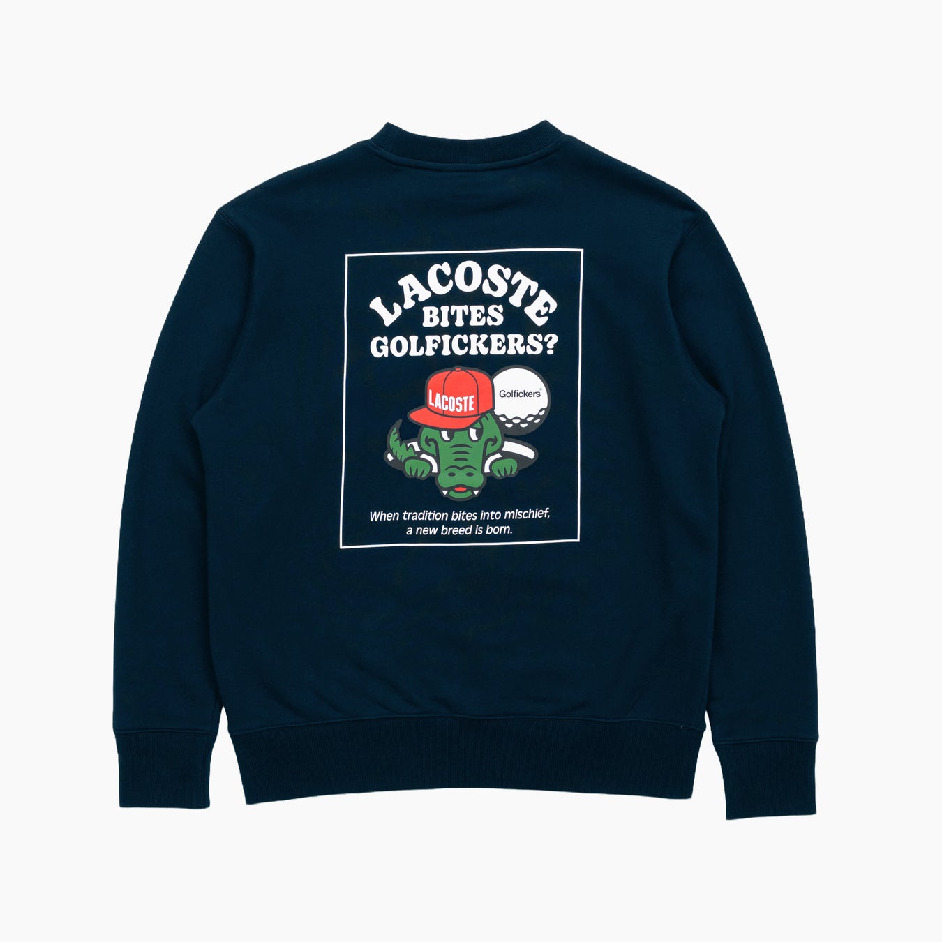 本コラボレーションを象徴する「LACOSTE BITES GOLFICKERS? 」は、LACOSTEのブランドアイコンである“ワニ”が、ゴルフィッカーズの象徴的な“アヒル”に強い関心を寄せる様子を、ユーモアとストーリー性をもって表現したものです。
