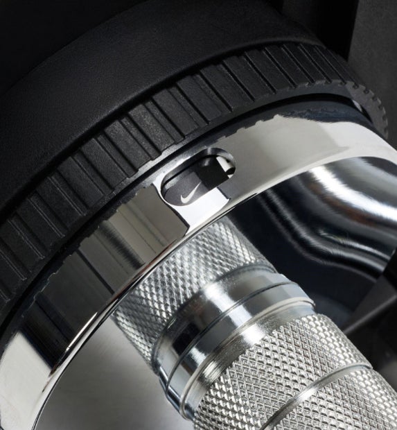 また、ひとつのダンベルで重量を自由に調整できるため、省スペースを実現。ホームジムやパーソナルジムなどスペースが限られた設置場所にも最適です。ダイヤルを回す際、Nikeのスウッシュロゴが見えるのもワンポイントに。