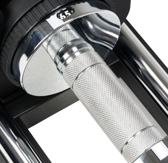 重量の変更は、ダイヤルを回すだけ。思わぬタイミングでプレートが取れて落ちてしまうといった事故を防げます。