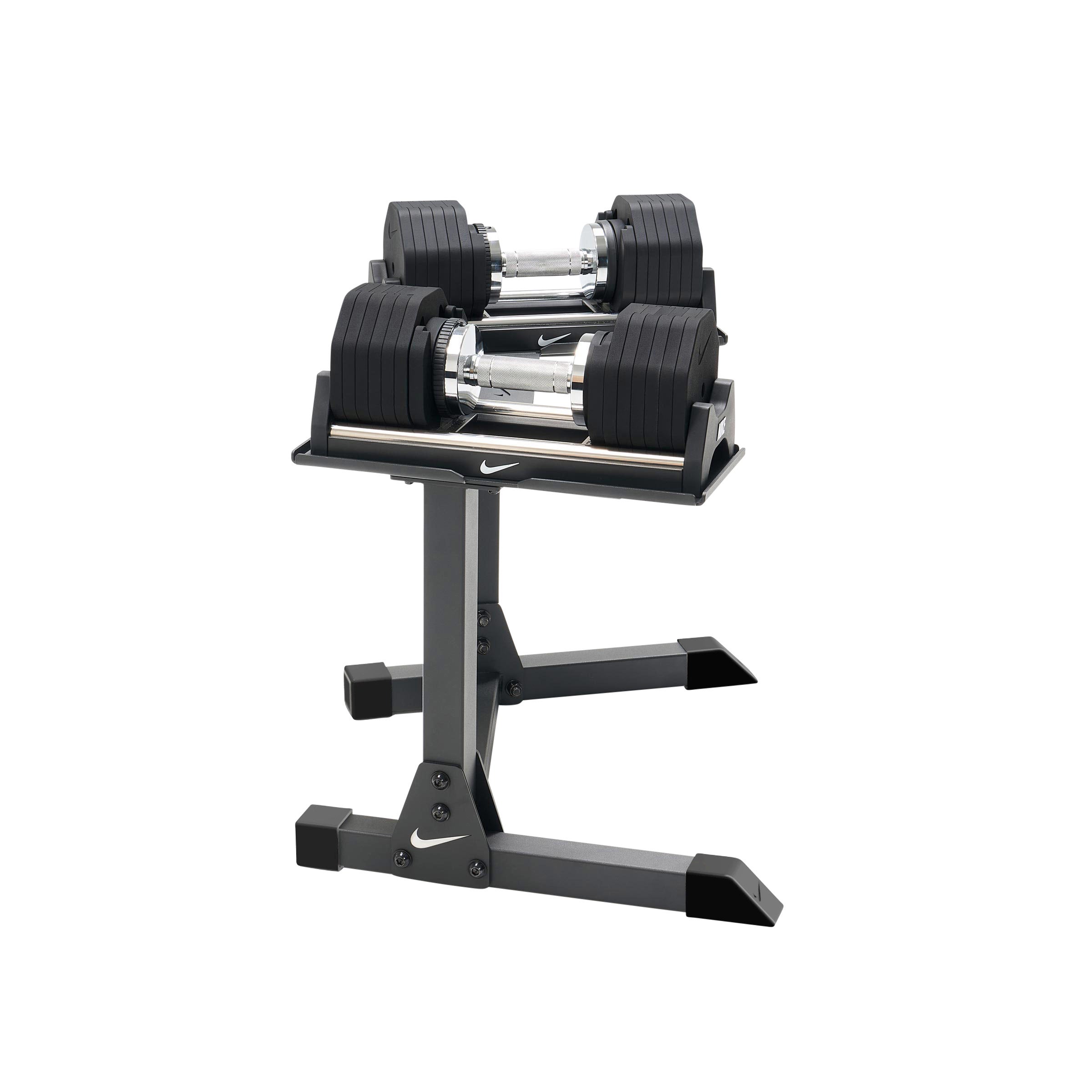 別売りのNike Adjustable Dumbbell Standと組み合わせることで、より安定した操作性と収納性にも対応できます。
