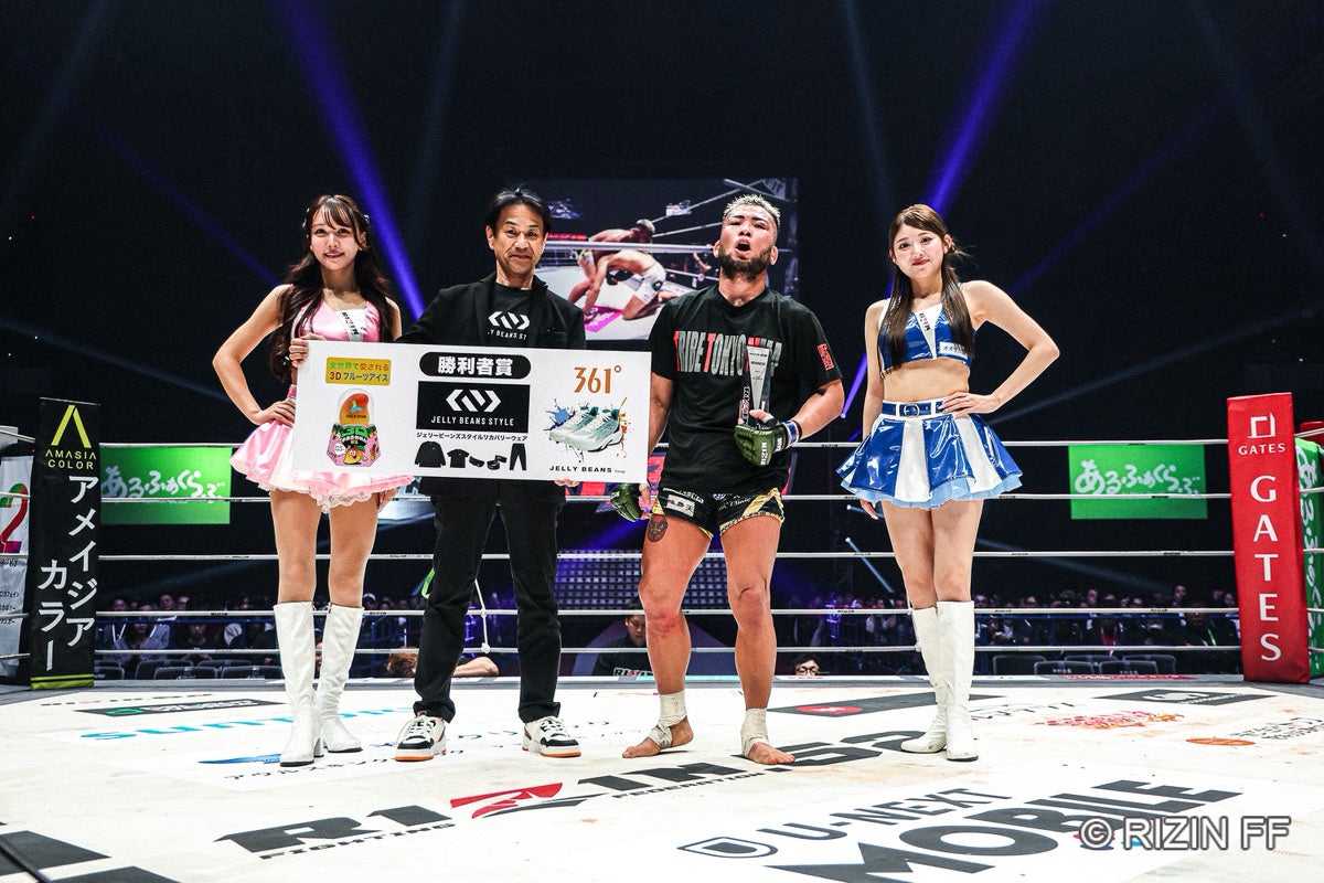 株式会社ジェリービーンズグループ(本社:東京都台東区、代表取締役:宮﨑 明)は、2026年3月7日(土)にRIZIN.52(会場:有明アリーナ)に協賛し、当社が展開するリカバリーウェアブランド「JELLY BEANS STYLE」とRIZINとのコラボレーションによる「RIZIN x JELLY BEANS STYLE」、グローバルスポーツブランド「361°」を会場内に出展いたしました。