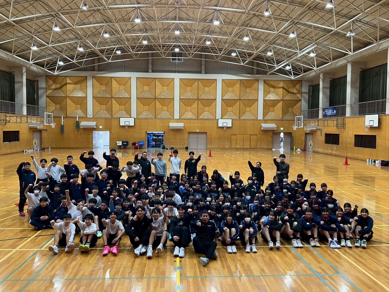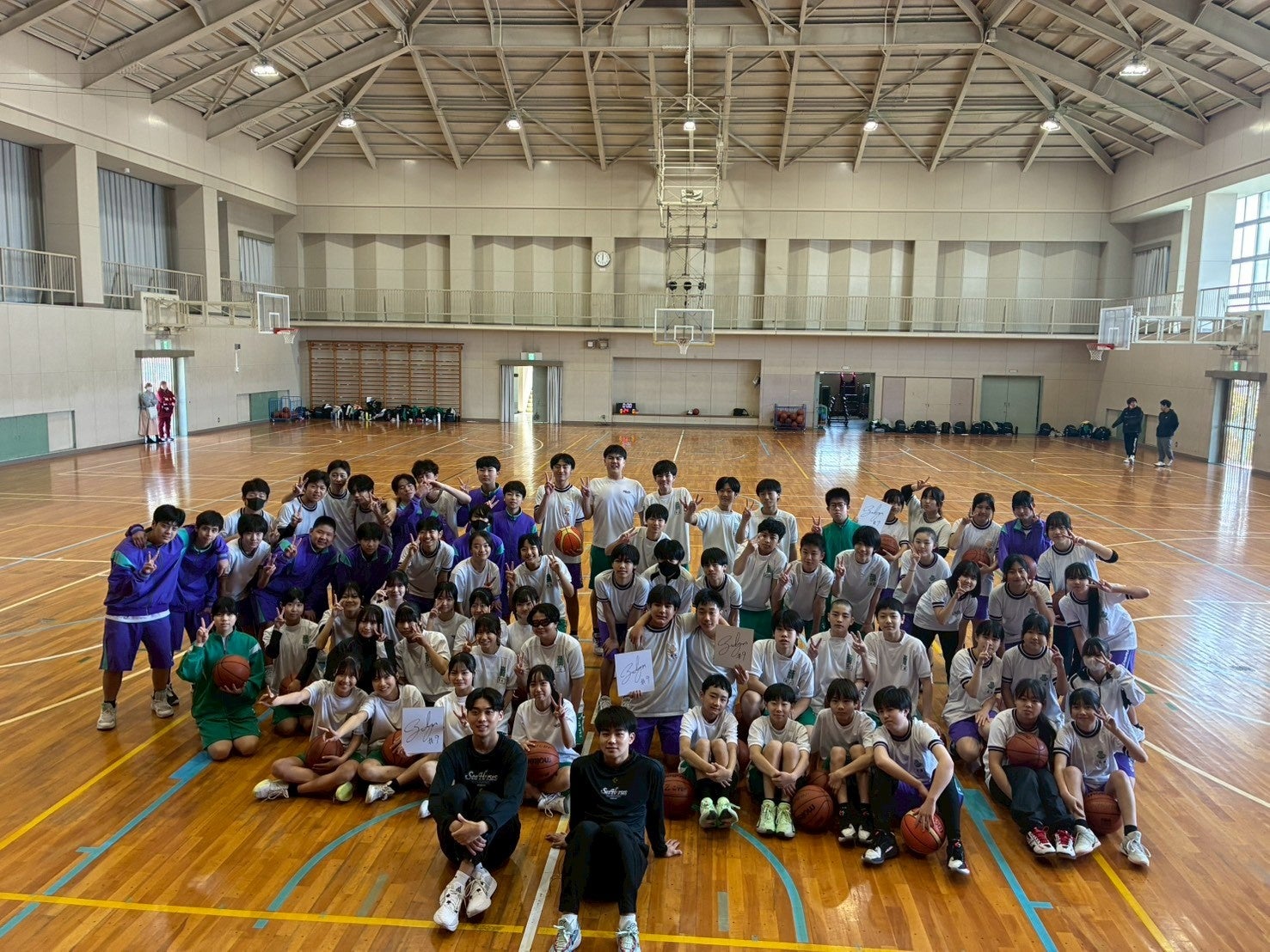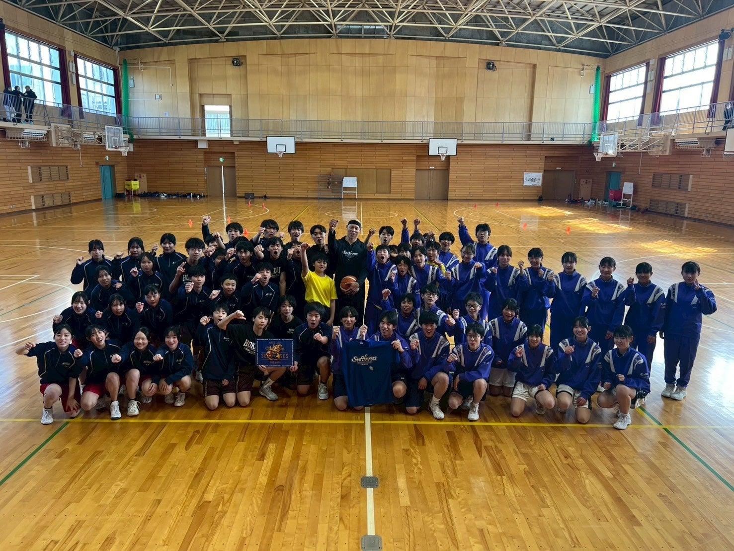 多くの子どもたちが参加し、選手やコーチとのふれあいを通じて、バスケットボールの基本動作やチームワークの大切さを学びながら、笑顔あふれる時間となりました。