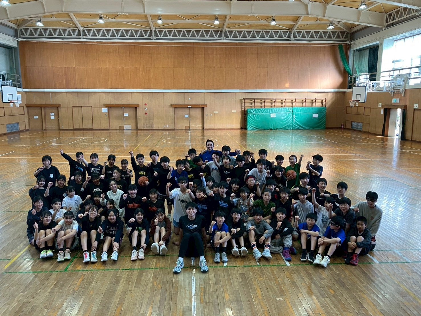 多くの子どもたちが参加し、選手やコーチとのふれあいを通じて、バスケットボールの基本動作やチームワークの大切さを学びながら、笑顔あふれる時間となりました。