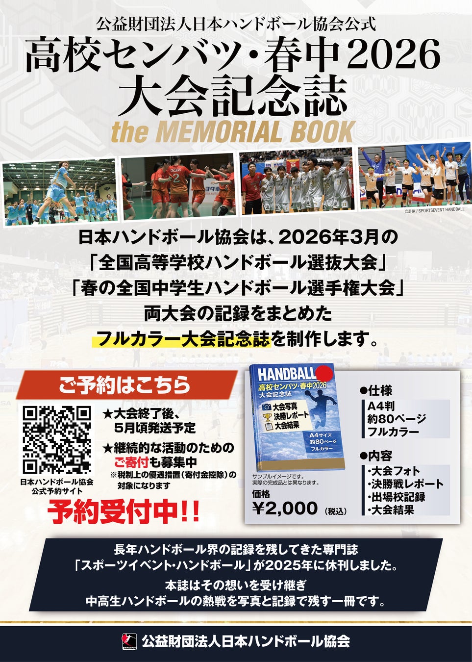 公益財団法人日本ハンドボール協会は、2026年3月に開催される「第49回全国高等学校ハンドボール選抜大会」および「第21回春の全国中学生ハンドボール選手権大会」の大会記録をまとめた大会記念誌を制作いたします。