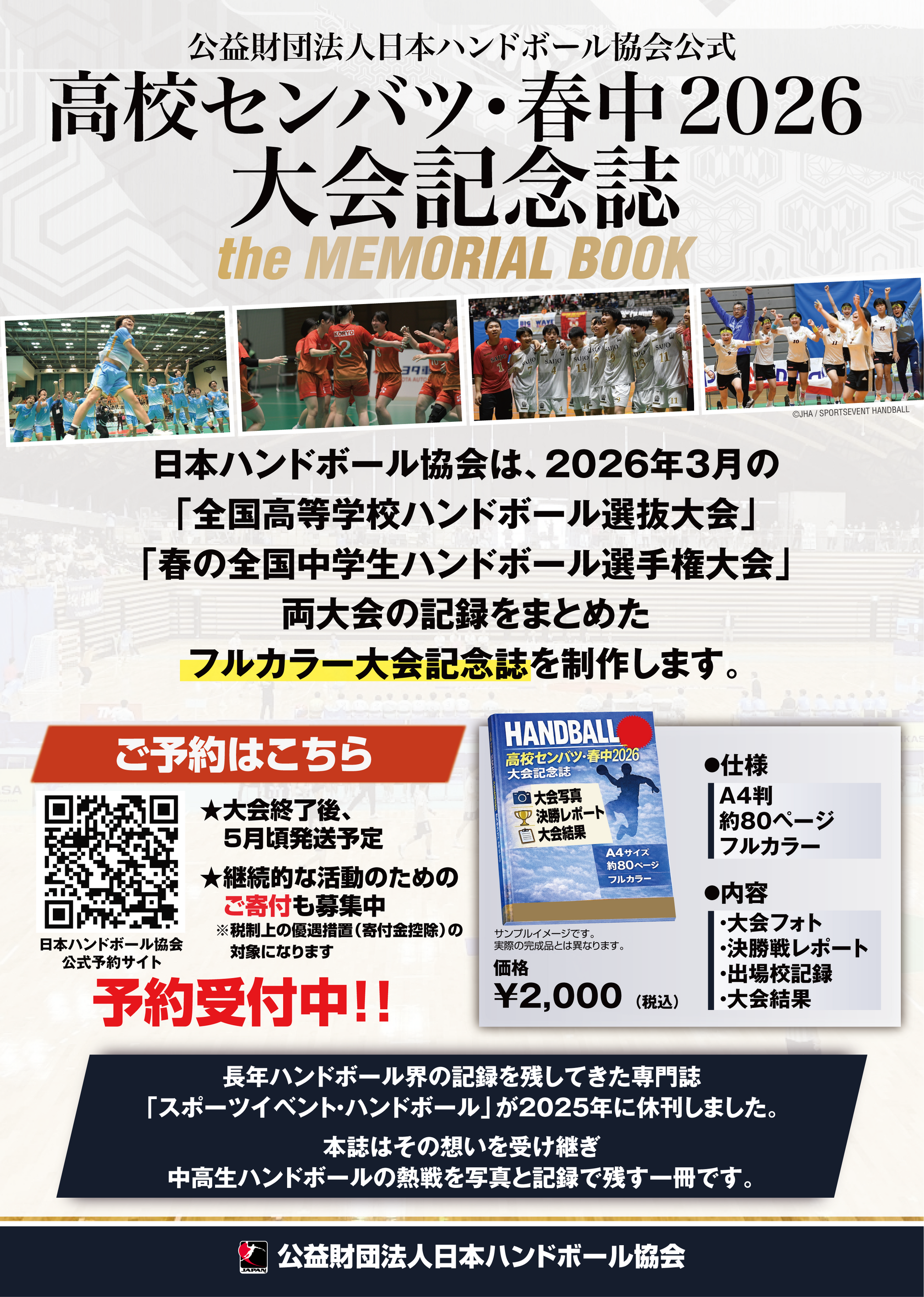 公益財団法人日本ハンドボール協会は、2026年3月に開催される「第49回全国高等学校ハンドボール選抜大会」および「第21回春の全国中学生ハンドボール選手権大会」の大会記録をまとめた大会記念誌を制作いたします。