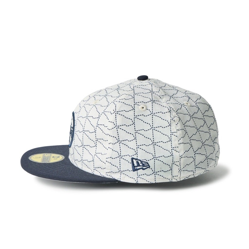 永楽屋が今回のために染め上げた手ぬぐいには、ニューエラのフラッグロゴのアウトラインを刺子調にレイアウトしたオリジナルパターンを採用しています。