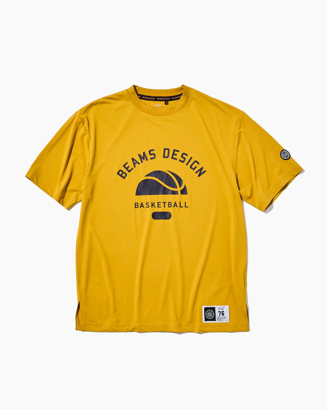 バスケットボールをモチーフにしたグラフィック、長めの着丈とサイドスリットが入ったBEAMS DESIGNのBASKETBALL定番Tシャツ。今季はブラウン、クリーム、マスタードの3カラー展開。