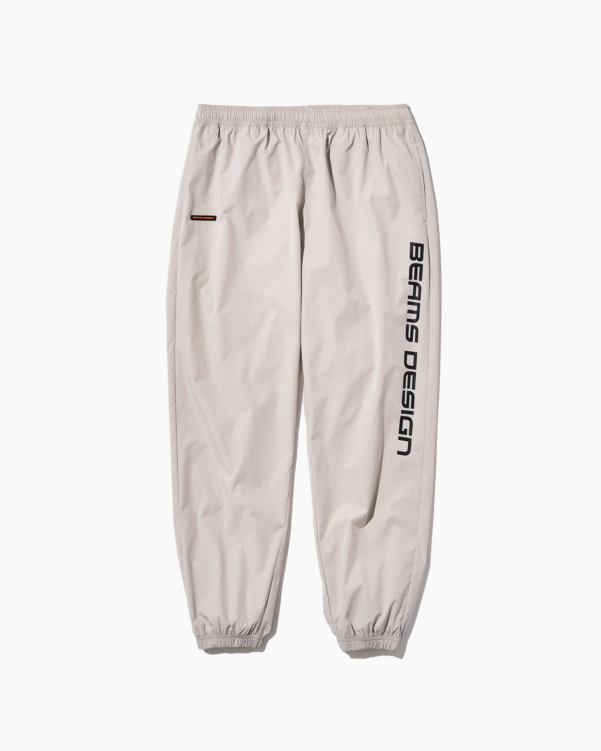ストレッチ素材を用いたトラックパンツ。同素材のジャケットやハーフパンツも展開。各ポケットとウエスト紐を備えた機能的な一本です。