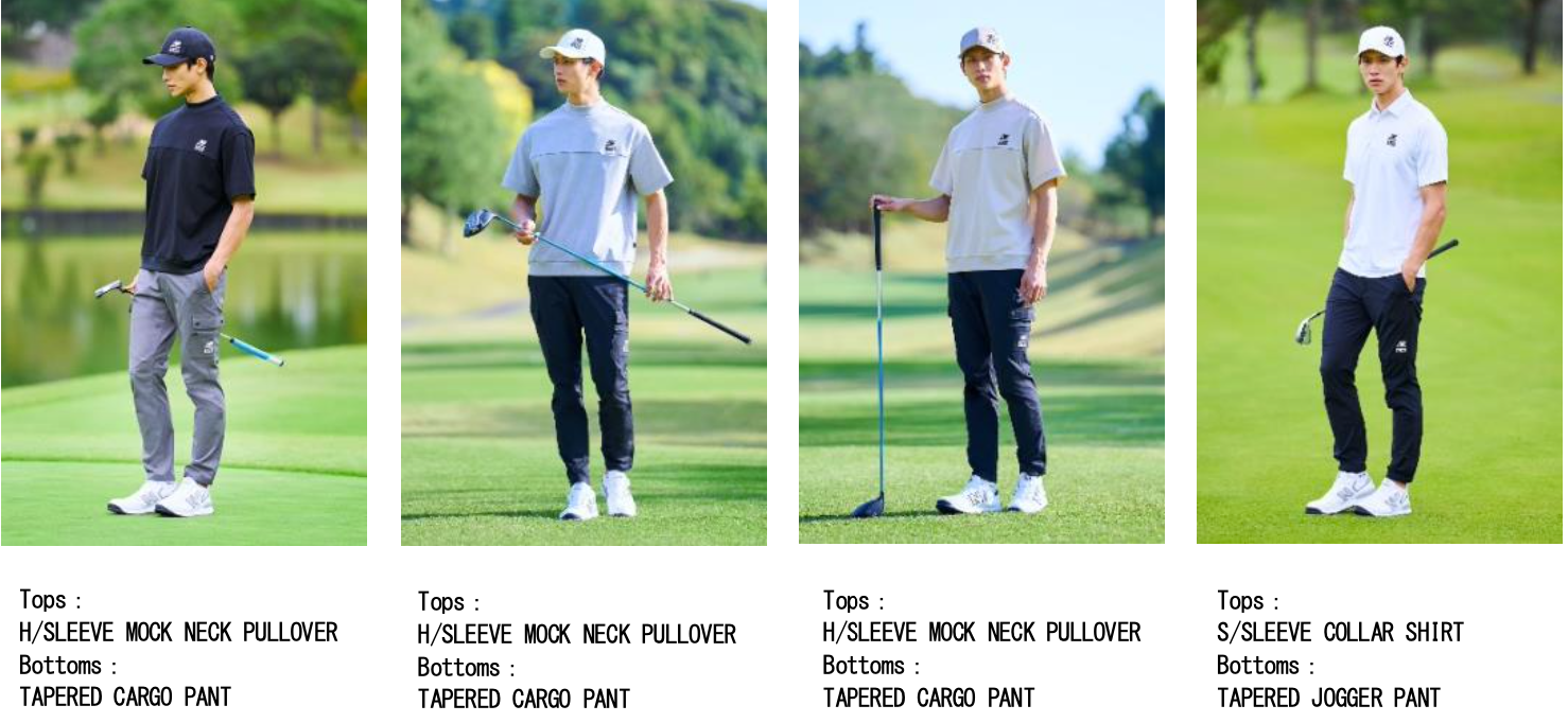 世代を問わず取り入れやすいシンプルなデザインと、さりげないアクセントが効いたディテールにより、コースでも自然体で着こなせるゴルフスタイルを提案します。