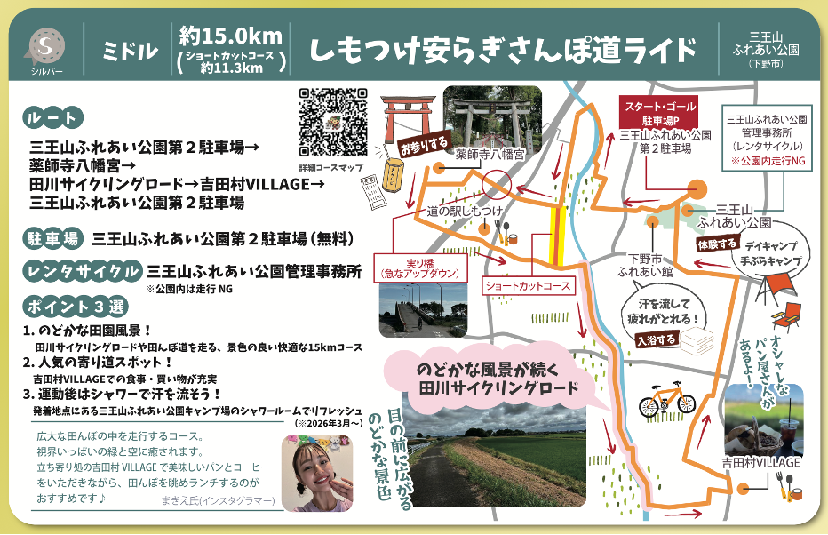 本格的なスポーツとしての自転車ではなく、日常の延長にある「心地よい移動手段」としてのサイクリングを提案しており、栃木県の自然やグルメを巡りながら、自分のペースで無理なく体を動かしたい方が、気軽に始められる工夫が随所に盛り込まれています。