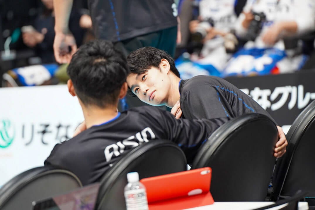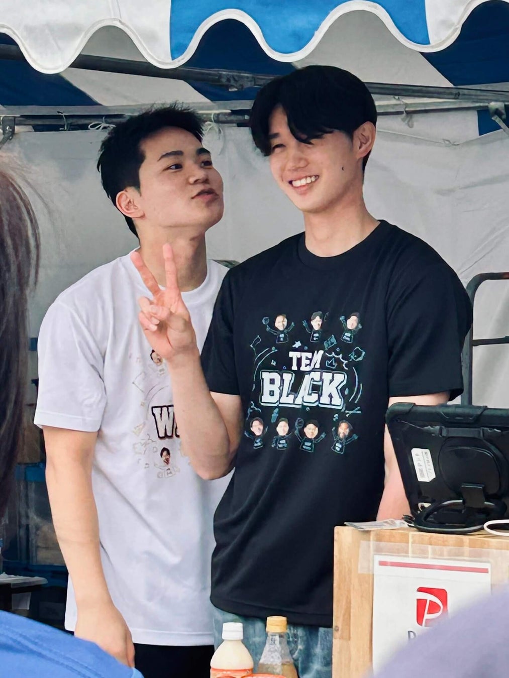 バスケ中、亮伍さん(#18 角野選手)との真剣なツーショット