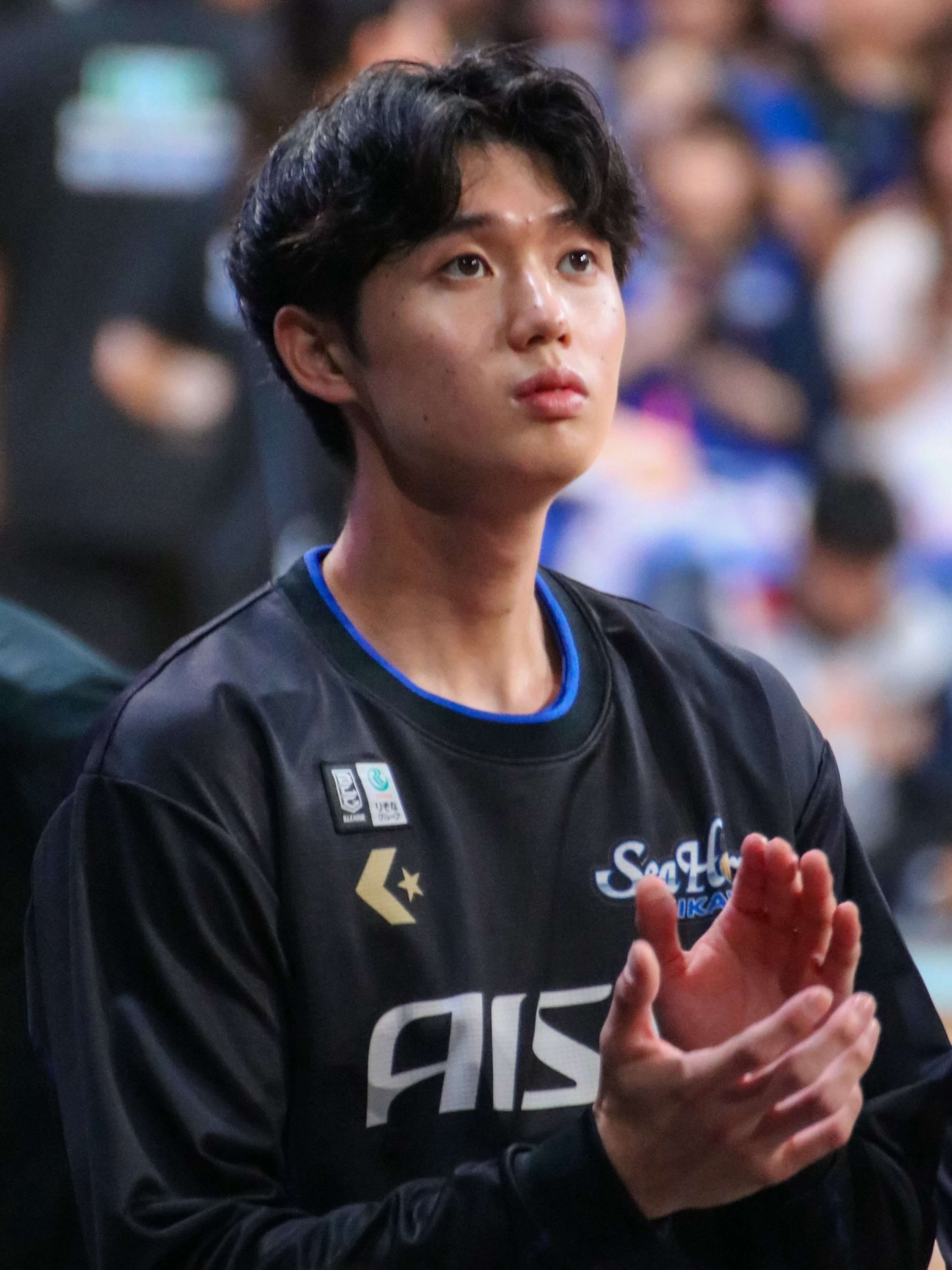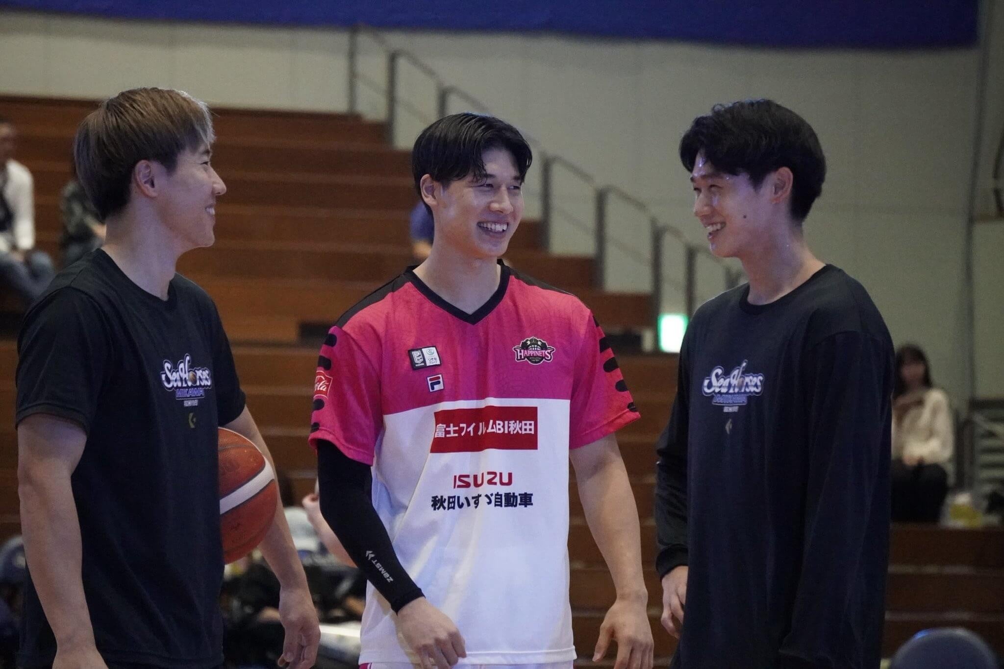 バスケ中、亮伍さん(#18 角野選手)との真剣なツーショット
