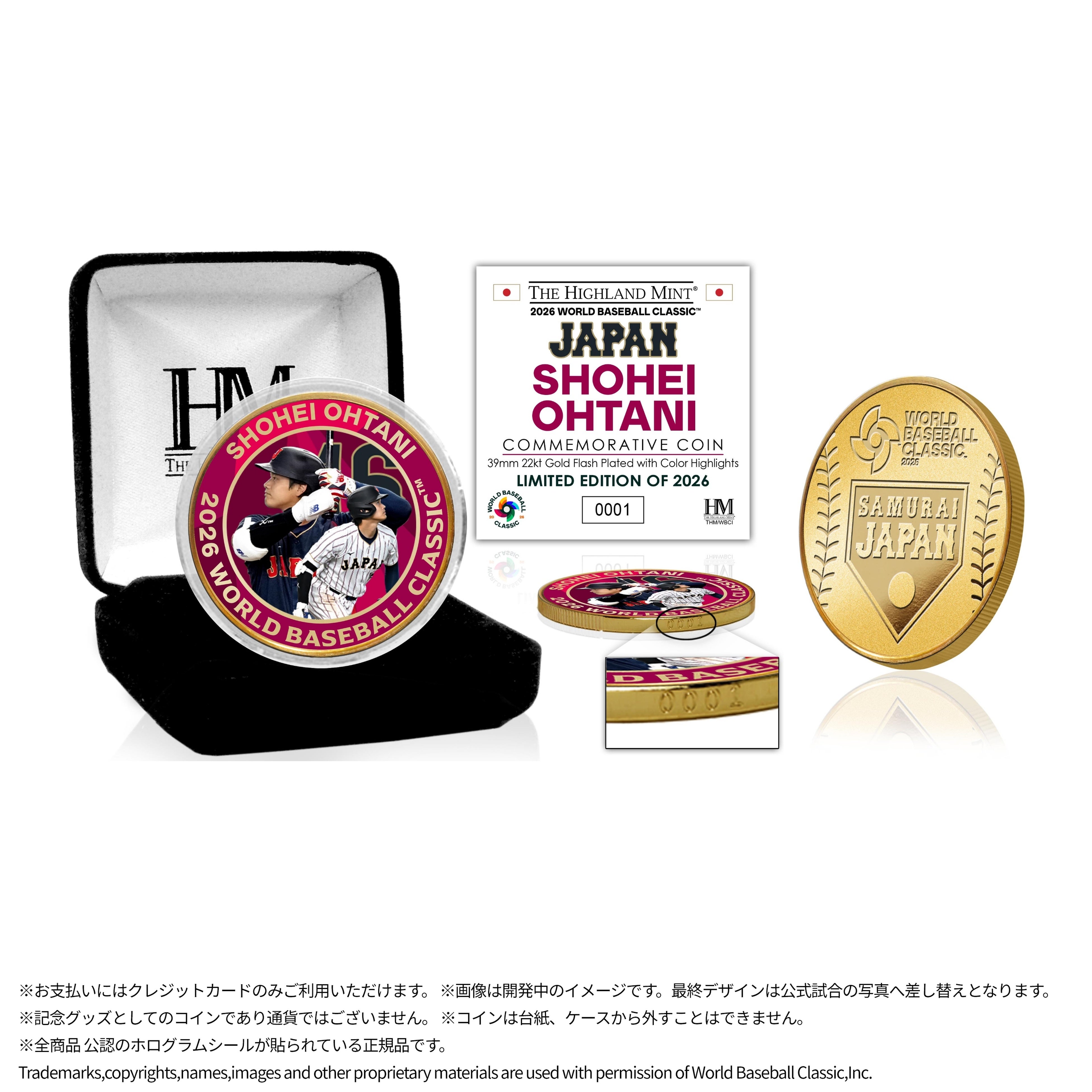 2026WBC 日本代表 大谷翔平選手を記念した特別仕様のゴールドコインで、大会をテーマに構成したデザインに、22ktゴールドメッキを施したコレクションモデルです。