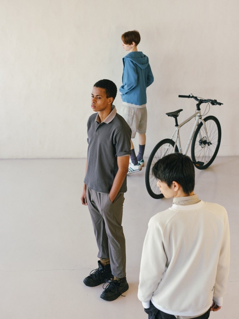 fashion+bicycle(機能性)を融合させ、⾃転⾞に乗ることを想定した機能と街に溶け込むデザインを両⽴させたファッションブランド。⽇常の振る舞い(=⾏動)が⾝振り(=スタイル)をつくるという考え⽅のもと、⾃転⾞に乗ることから街を歩くことまでをひとつながりの「⽣活の流れ」として捉え、⾏動そのものに寄り添った⾃然で快適な⾏動をデザインするスタイルブランドです。