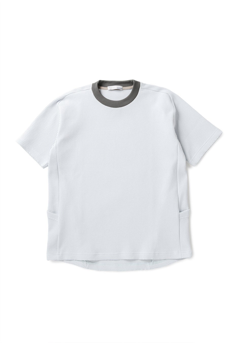 凹凸のあるワッフル組織により無地ながら存在感のある雰囲気に仕上がっており、⼀般的なTシャツと差別化を図っている。