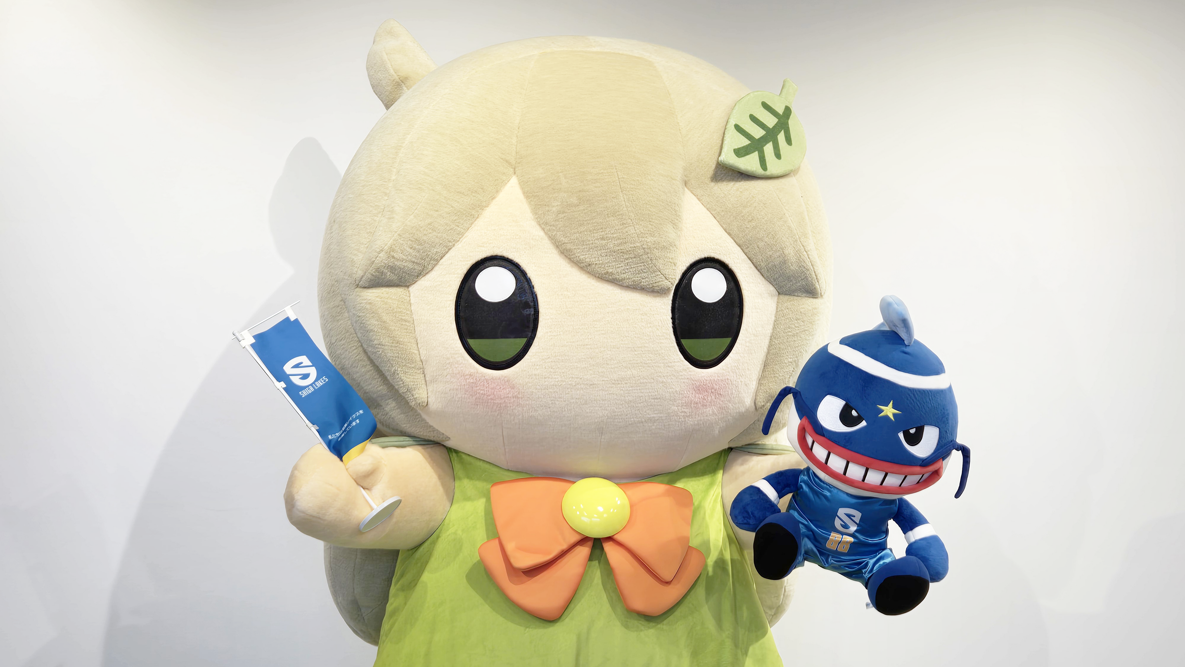 同日、会場となる滋賀ダイハツアリーナで、リーフワークス公式キャラクター「このはちゃん」の着ぐるみをお披露目。レイクス公式キャラクターのマグニーと一緒に、滋賀レイクスを応援します。