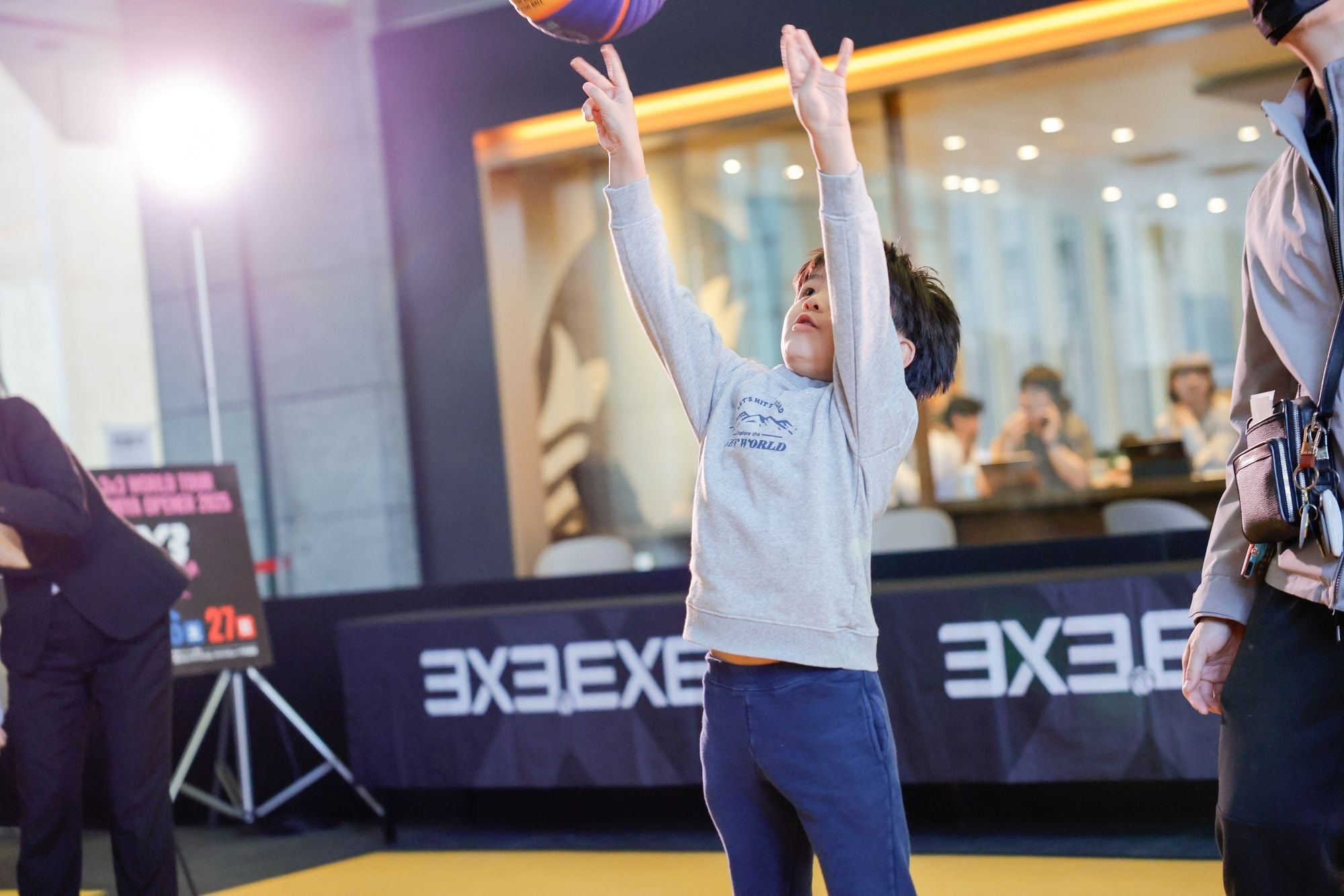 また、会場にライトラインカラーの3x3のコートとゴールを設置し、⼀般の方が参加できる3x3の体験イベントも開催します。日本のみならず世界中から⼈の集まる東京駅という場所で、多くの方が3x3の魅⼒に触れることのできる機会を創出します。