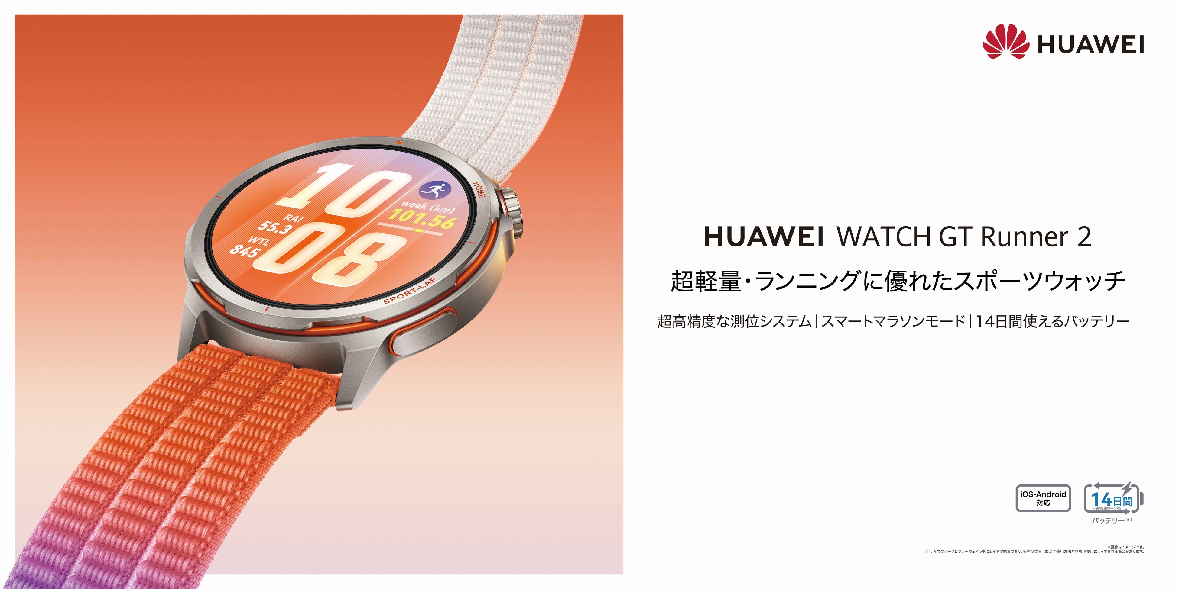 華為技術日本株式会社(ファーウェイ・ジャパン)は、ランニング体験のさらなる進化を追求した新製品スマートウォッチ『HUAWEI WATCH GT Runner 2』を、3月27日(金)より発売します。市場想定価格は54,780円(税込)で、カラーはオレンジ、ブルー、ブラックの3色展開です。通気性に優れたAirDryウーブンベルトのほか、フルオロエラストマーベルトも同梱しています。