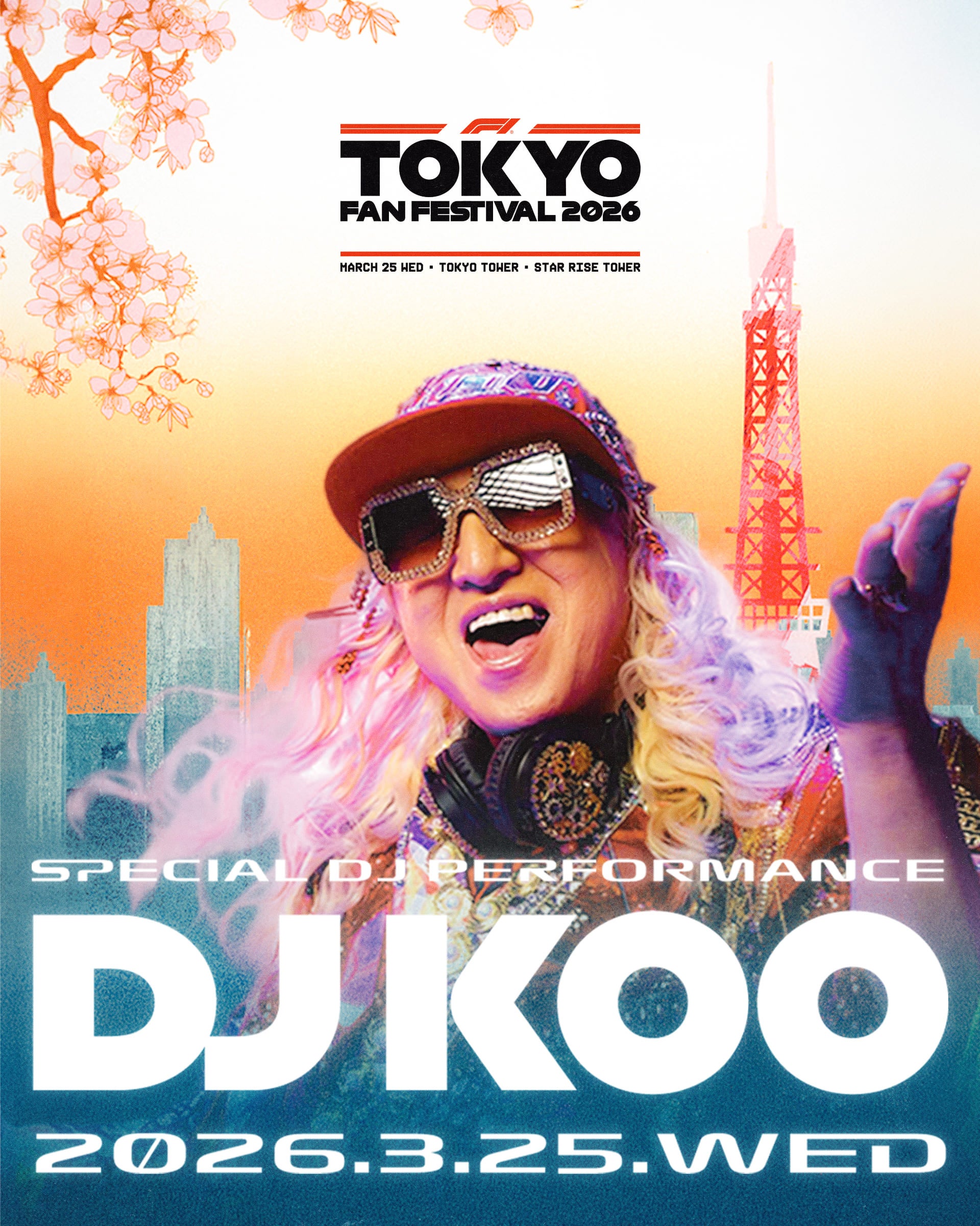 TRF の DJ として活躍する DJ KOO が登場。F1®の持つスピード感や高揚感とシンクロするサウンドと、DJ KOO ならではのエネルギッシュなパフォーマンスで、イベントをさらに盛り上げます。