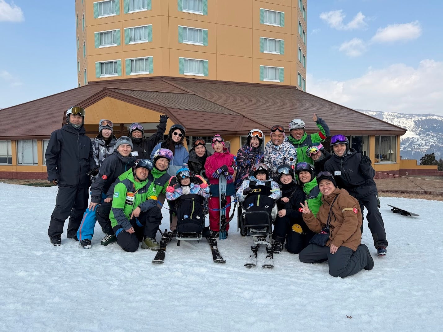ゲレンデの上では、インストラクターとともに久しぶりのスキー、スノーボードを楽しむお父さん、お母さんたちが、自分たちよりも速く駆け抜けていくお子さんたちの背中を眩しそうに見つめていました。普段は支える側の両親たちが、今日は娘たちの背中を見つめている——その景色が、忘れられない場面となりました。