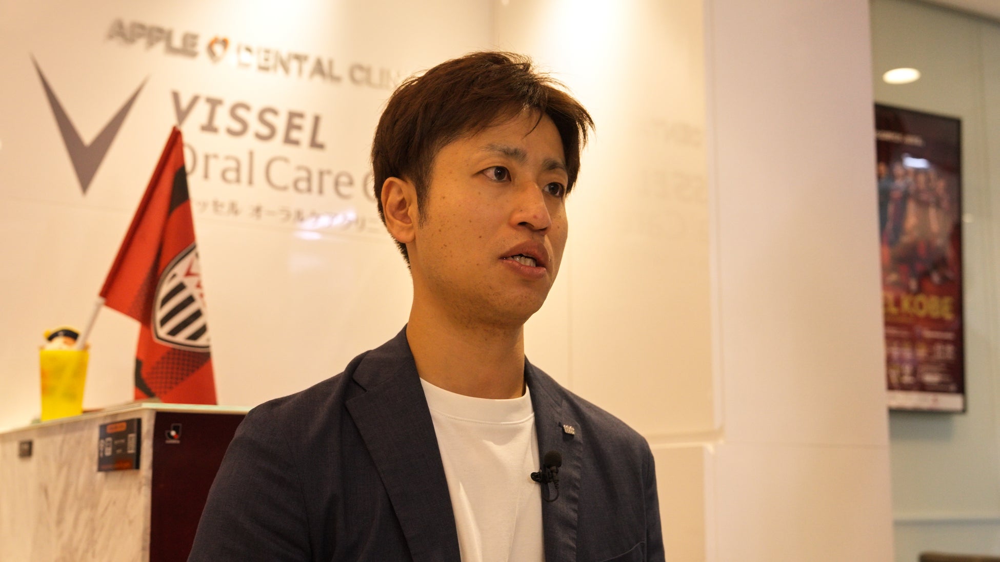 ヴィッセルカラーやグッズが溢れる空間は、ファンや子供たちが大喜びする素晴らしい環境だと感じました。選手にとっても、後回しになりがちな歯科ケアを最新技術の映像等を通じて楽しく学べたことは、クラブが選手の健康管理とリスク軽減を図る上でも大変有意義です。スポーツと歯科は無関係に思われがちですが、クラブの発信力や選手の存在をきっかけに、地域の方々の口腔ケアや健康増進に繋がることを期待しています。