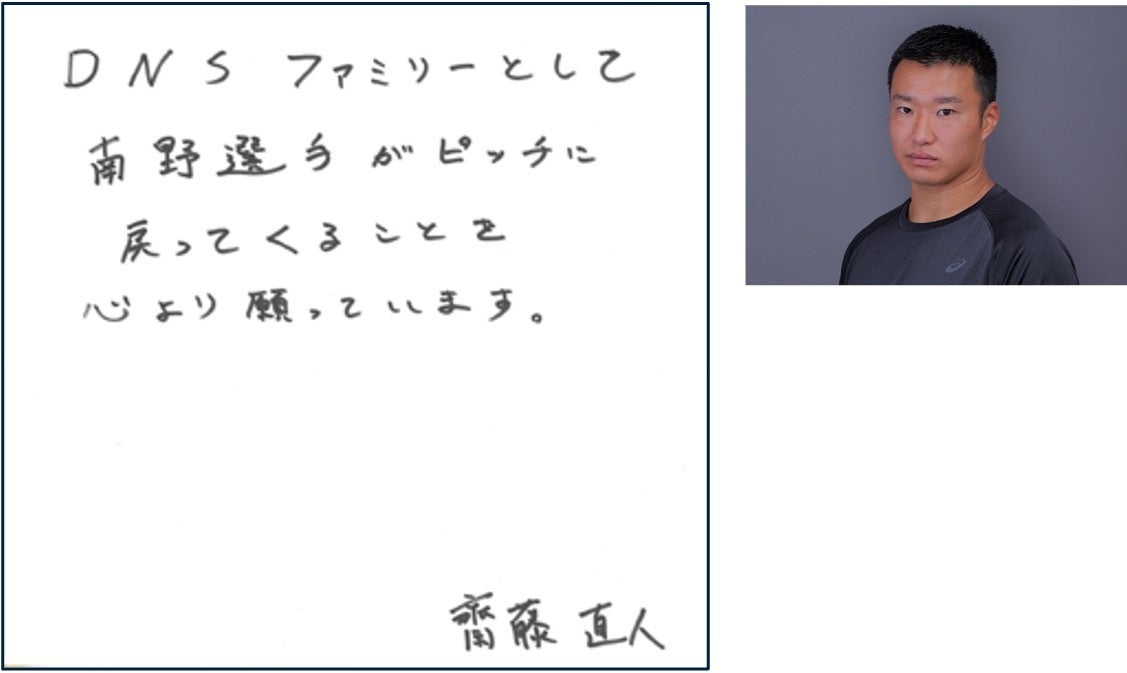 石川選手からは「この時間が必ずこれからにつながると思います。今の自分としっかり向き合って、焦らずに復帰してください。応援しています。」、齋藤選手からは「DNSファミリーとして南野選手がピッチに戻ってくることを心より願っています」、塩越選手からは「また元気にプレーする姿を楽しみにしています!!!」と直筆のエールが届いています。競技は違っても、世界に挑み続ける者同士。その想いが、南野選手のもとへと集まっています。