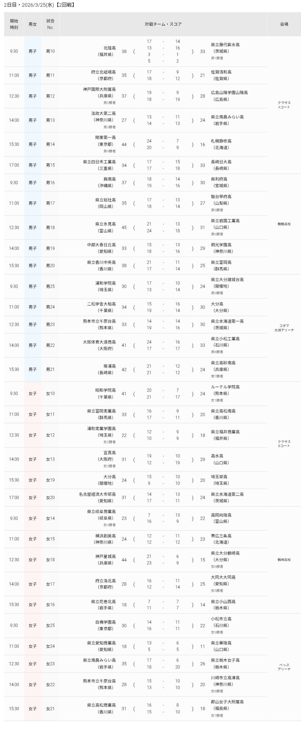 詳細は、試合日程・結果ページをご覧ください。