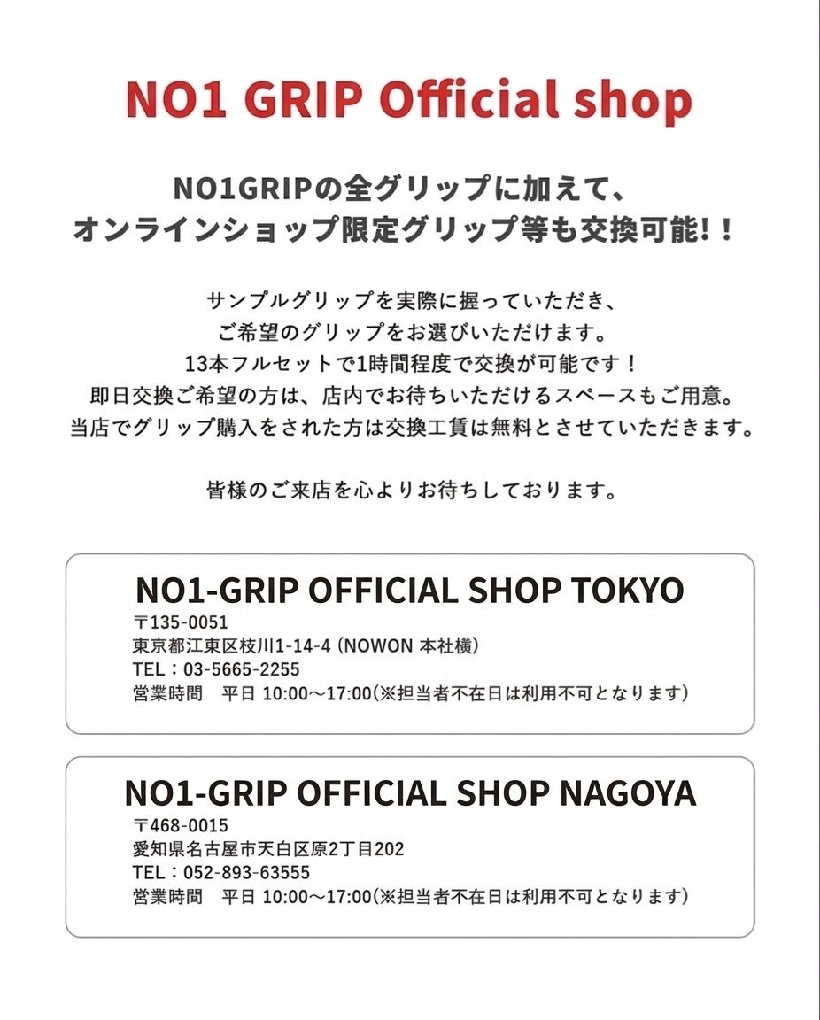〜東京・名古屋2拠点のオフィシャルショップにてグリップ交換サービスを展開 〜