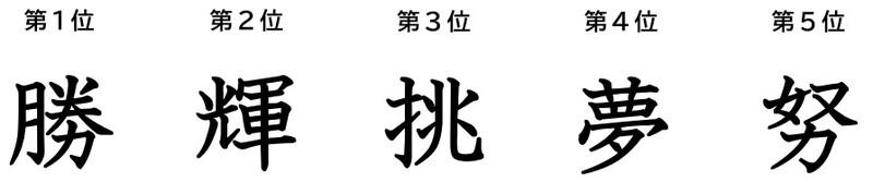 また、本コンテストに応募されたSAMURAI BLUE(サッカー日本代表)に贈られた漢字一字の集計結果では、「勝」が1位となりました。トップ5にランクインした漢字を紹介します。