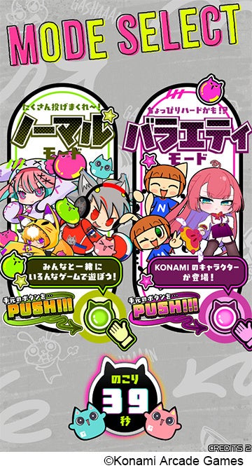 ゲームモードには、さまざまなゲームをプレーしながらボスと戦う「ノーマルモード」と、たくさんのKONAMIキャラクターのミニゲームが楽しめる「バラエティモード」があります。