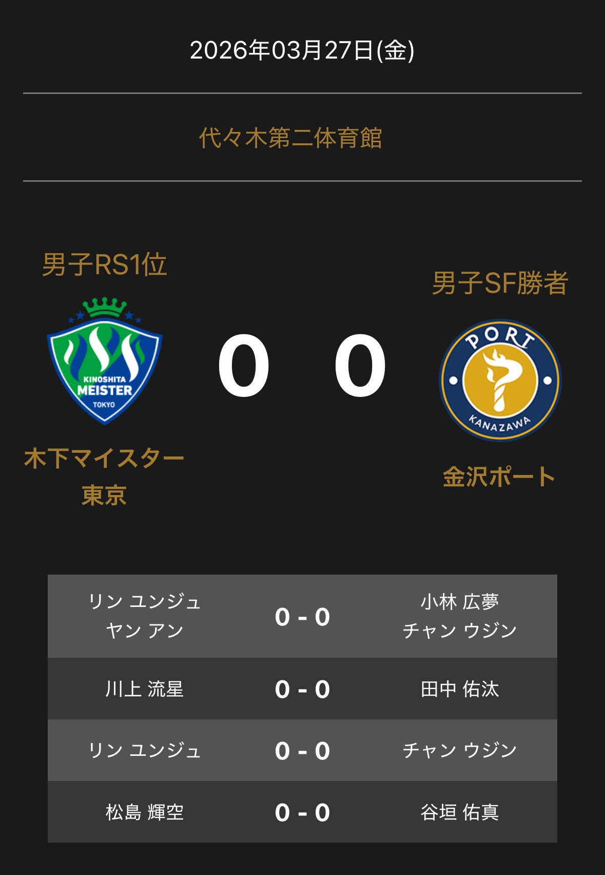 ノジマTリーグ 2025-2026シーズン プレーオフ 男子ファイナル 3月27日(金) 開催 木下マイスター東京 vs 金沢ポート 対戦オーダーを発表いたします。