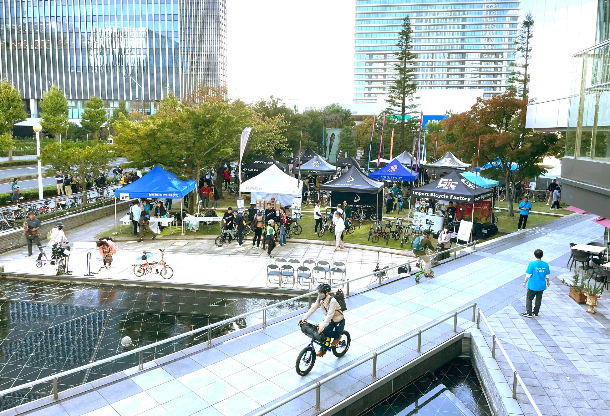 人気&注目ミニベロの試乗会をメインに、自転車関連アイテムの展示販売、ミニベロを使ったミニゲームなどさまざまなコンテンツを用意。