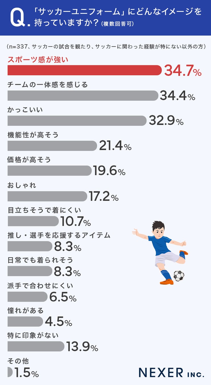 ■34.7%が、サッカーユニフォームに「スポーツ感が強い」イメージがあると回答