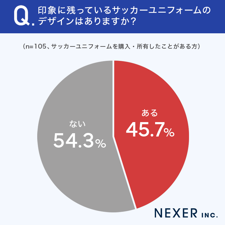 ■45.7%が、印象に残っているサッカーユニフォームのデザインが「ある」と回答