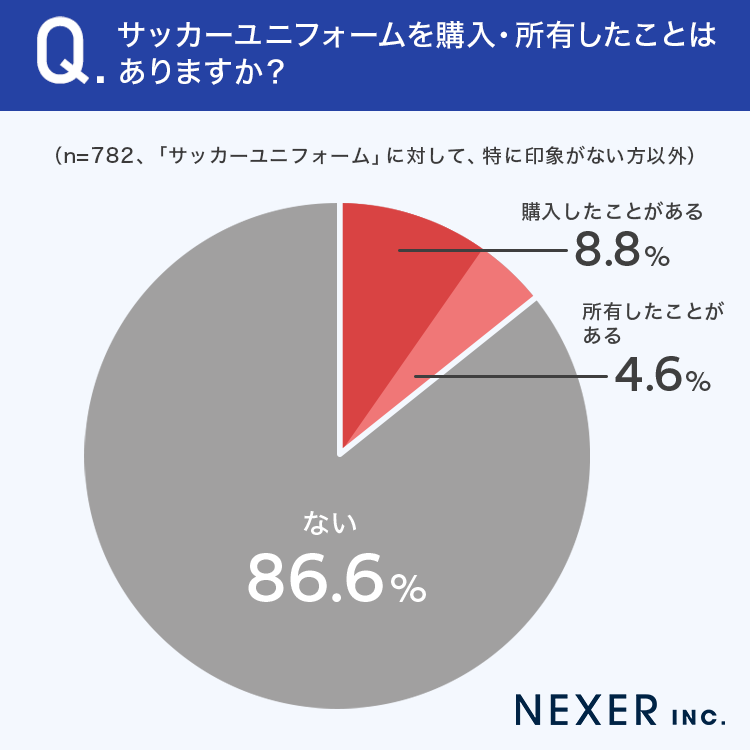 ■86.6%が、サッカーユニフォームを購入・所有したことが「ない」と回答