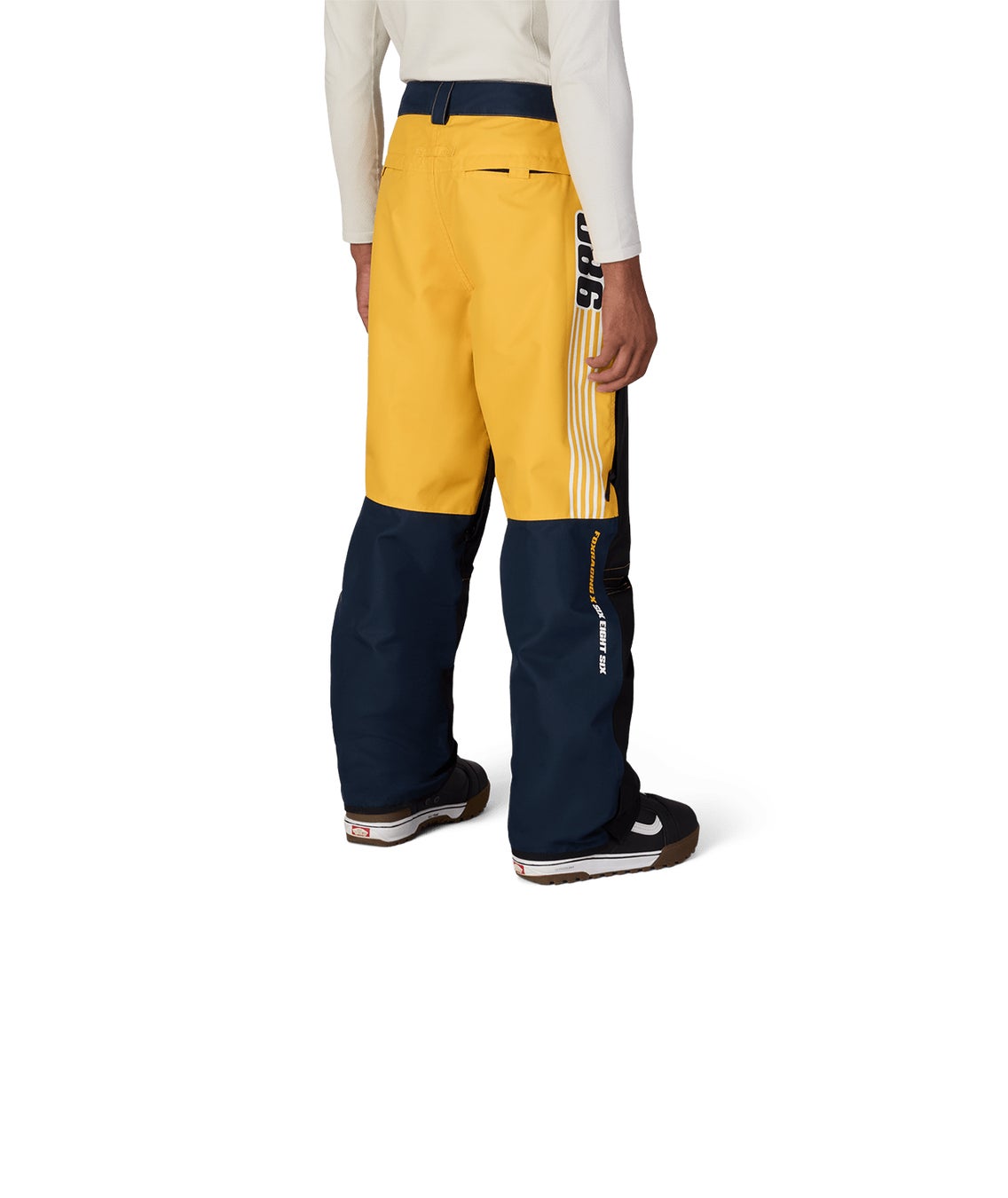 686とFox Racingのコラボレーションシリーズ。動きやすさとシルエットを両立し、セットアップでの完成度の高さが支持を集める一本