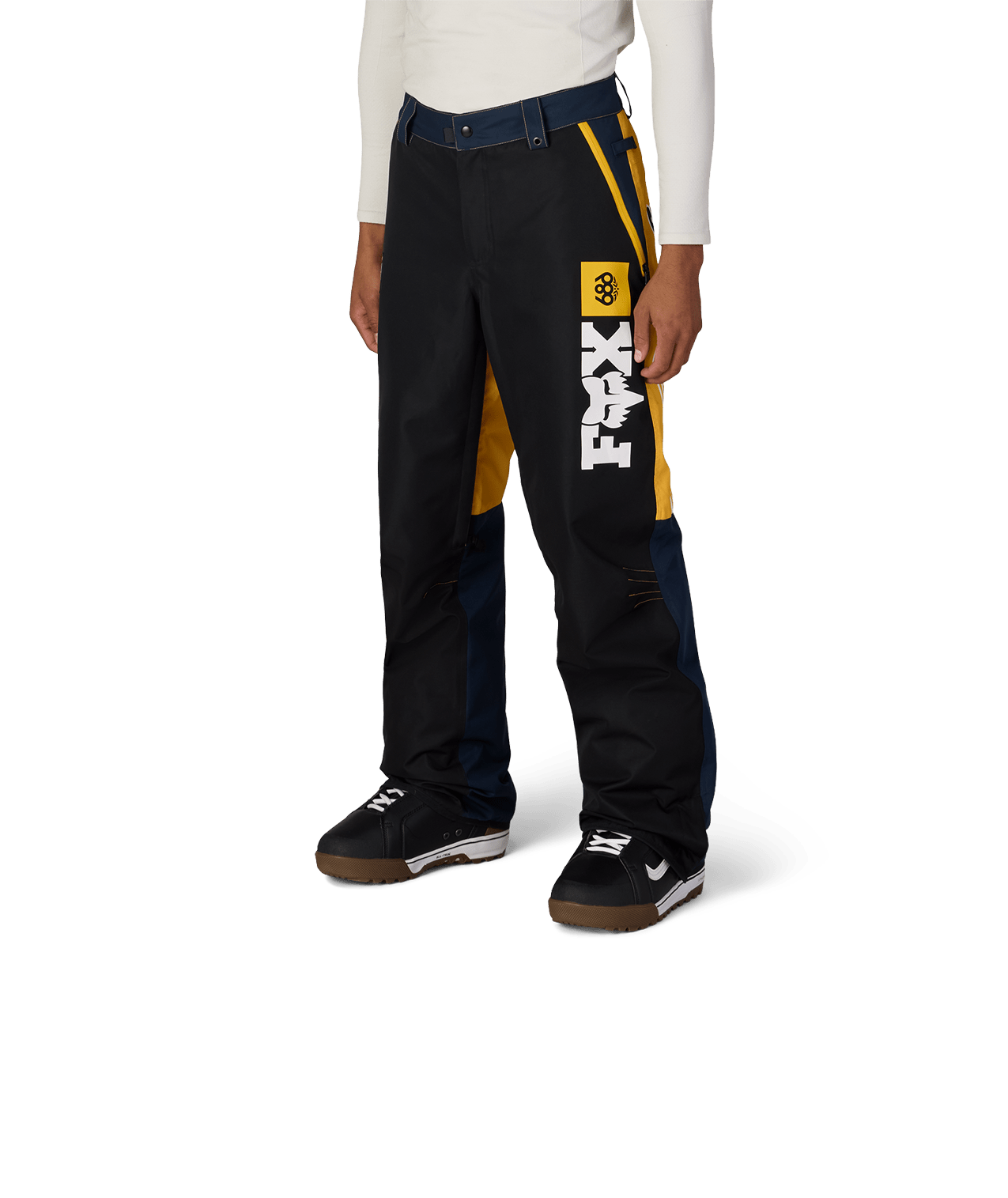 686とFox Racingのコラボレーションシリーズ。動きやすさとシルエットを両立し、セットアップでの完成度の高さが支持を集める一本