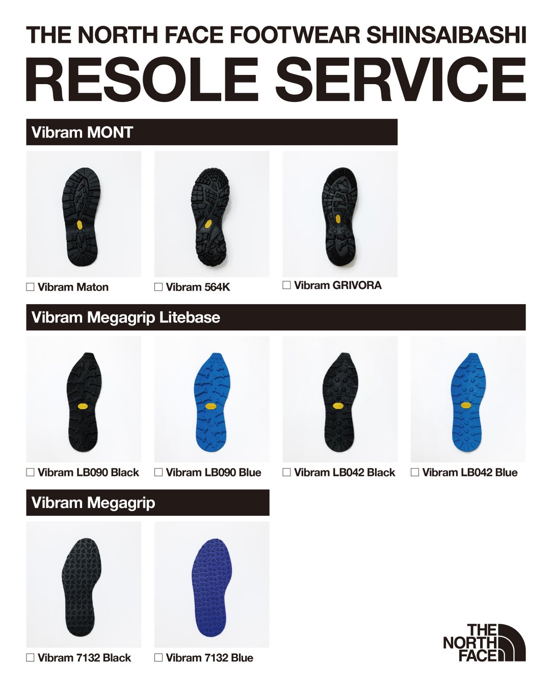 また、ヴィブラムジャパン株式会社が提供するアウトソールを使用した「Resole Service(リソールサービス)」では、すり減ったアウトソールと優れたグリップ力と耐久性を誇るVibram Sole(ヴィブラムソール)を9種類(店舗オープン時)のソールの中から選択し交換することができます。このように好みのソールに交換できることで、オリジナルフットウエアとして楽しみながら長く使い続けることができるため、当社が注力する製品のロングライフを実現できるサステナビリティも意識したコンテンツとなっています。