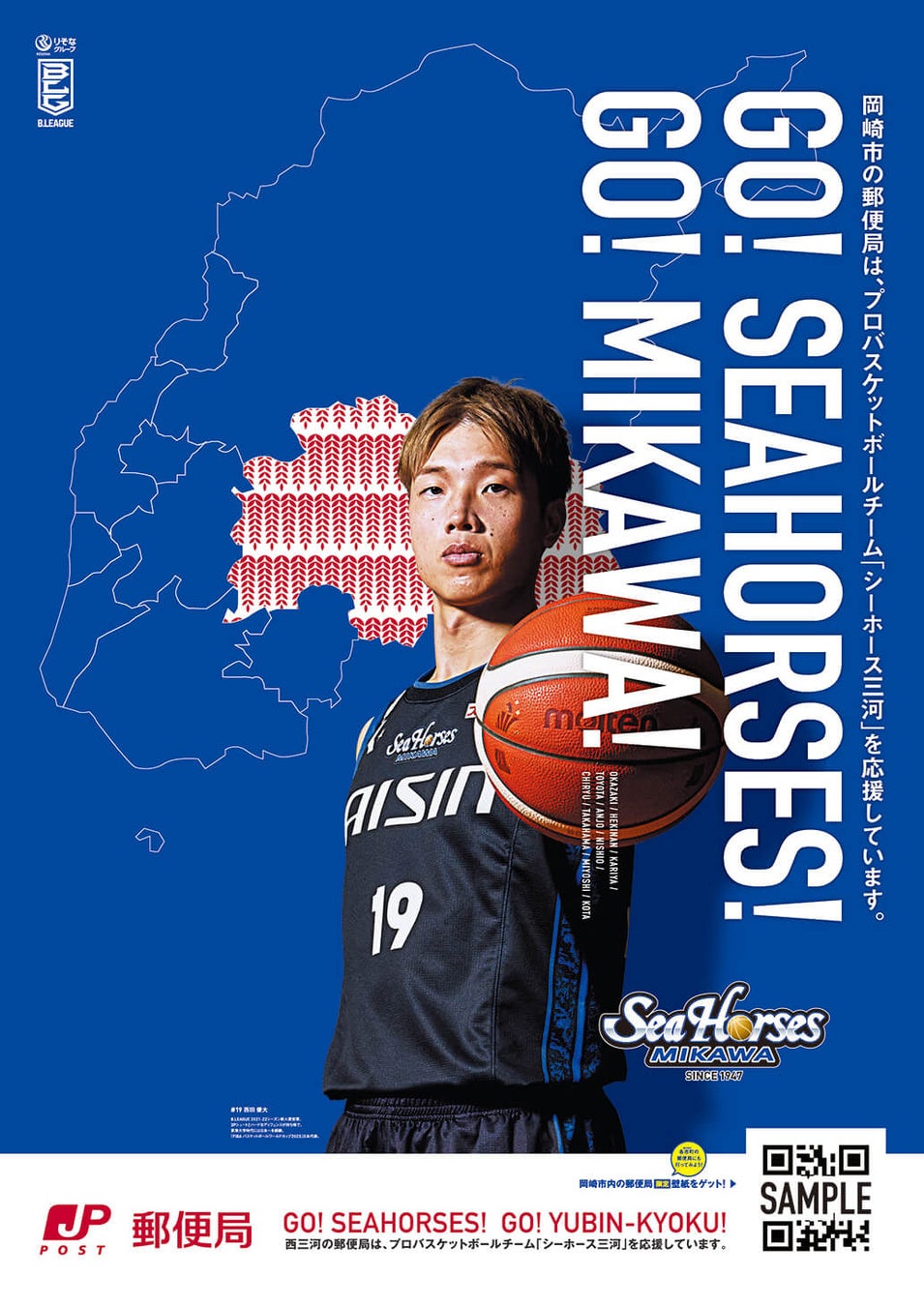 このたび、日本郵便株式会社東海支社にご協力いただき西三河地区 全郵便局(143局)で掲出中のシーホース三河オリジナル青援ポスターのデザインがリニューアルいたします。