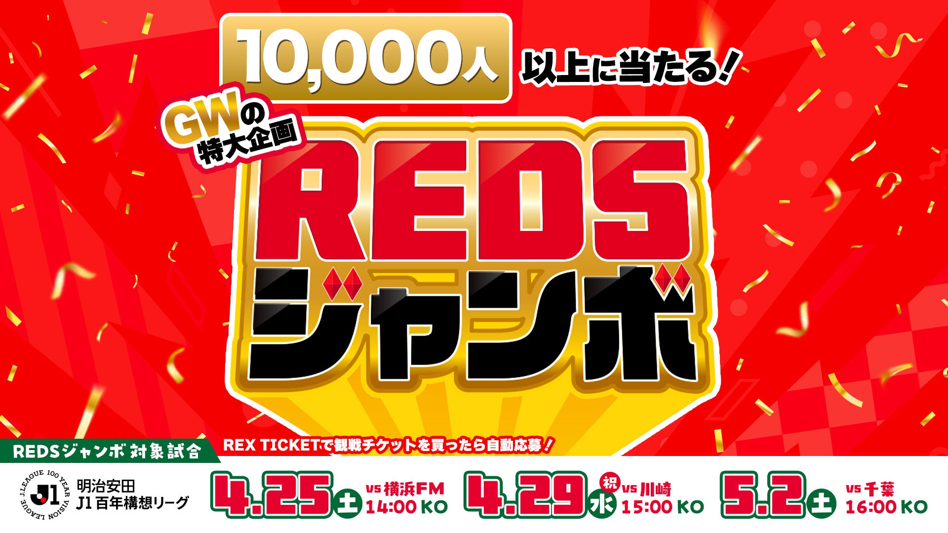 ゴールデンウィークのホーム3連戦では、来場者を対象とした抽選キャンペーン「REDSジャンボ」を実施します。